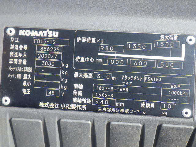Xe nâng điện Komatsu 1.5 t sx 2020 dịch giá, lốp đặc, bình ắc quy 565Ah/48V nâng cao 3.0m, motor xoay chiều, chạy 3524h xe đủ sạc, bình tốt, nhập khẩu trực tiếp tự Komatsu máy cũ, CO đăng kiểm, tờ khai, hoá đơn đầy đủ