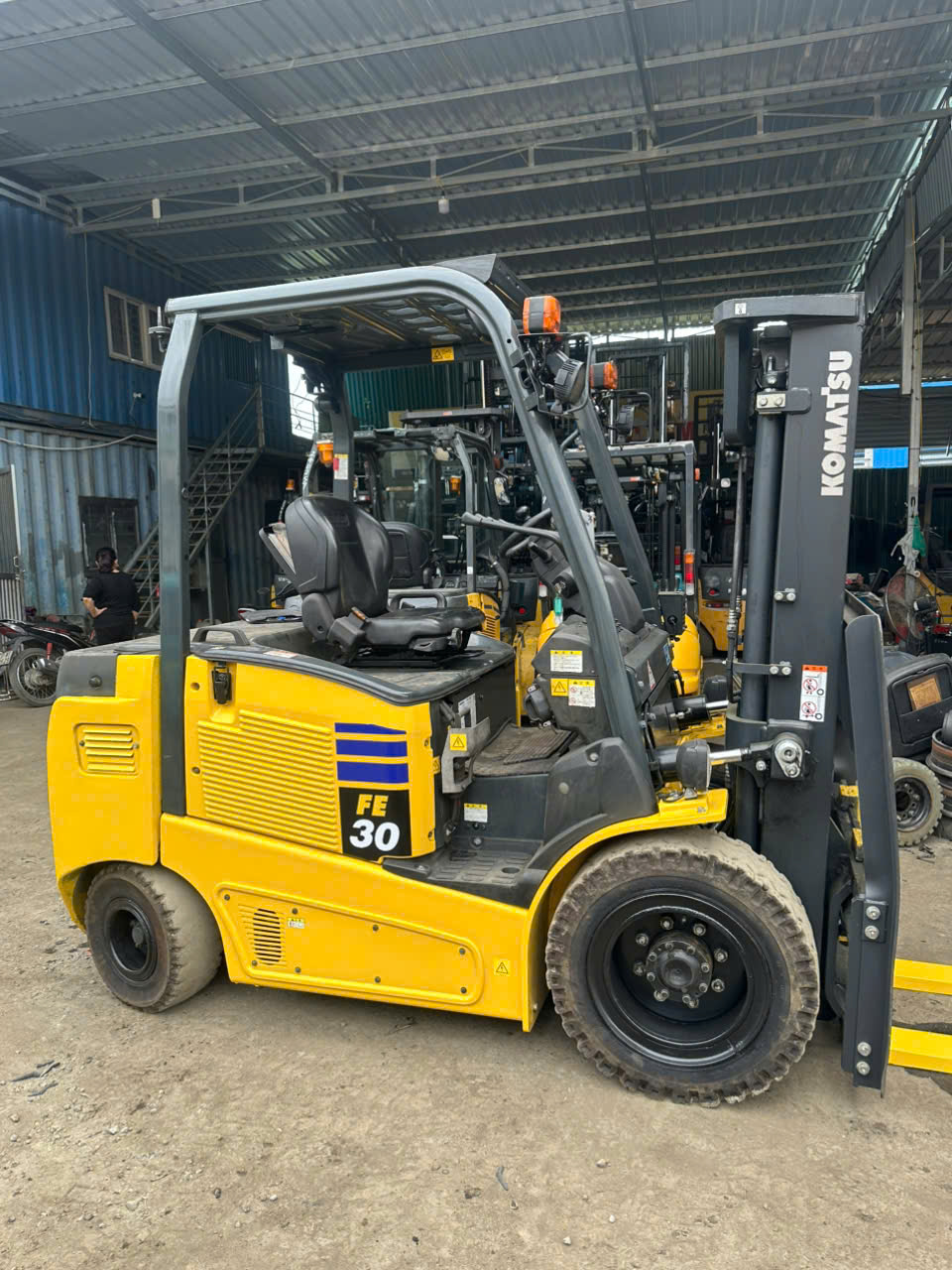 Xe nâng điện Komatsu FE30 (thường là model FE30-1) là dòng xe nâng điện ngồi lái 3 tấn, nhập khẩu Nhật Bản, nổi bật với khả năng nâng 3 tấn, vận hành êm ái, tiết kiệm điện, thân thiện môi trường, thường có chiều cao nâng đa dạng (khoảng 3m – 4m+), sử dụng pin khô, phù hợp cho kho bãi nhờ tính năng thông minh and an toàn cao cấp