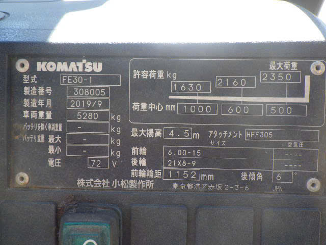 THÔNG SỐ XE NÂNG ĐIỆN KOMATSU 3.0 TẤN FE30-1