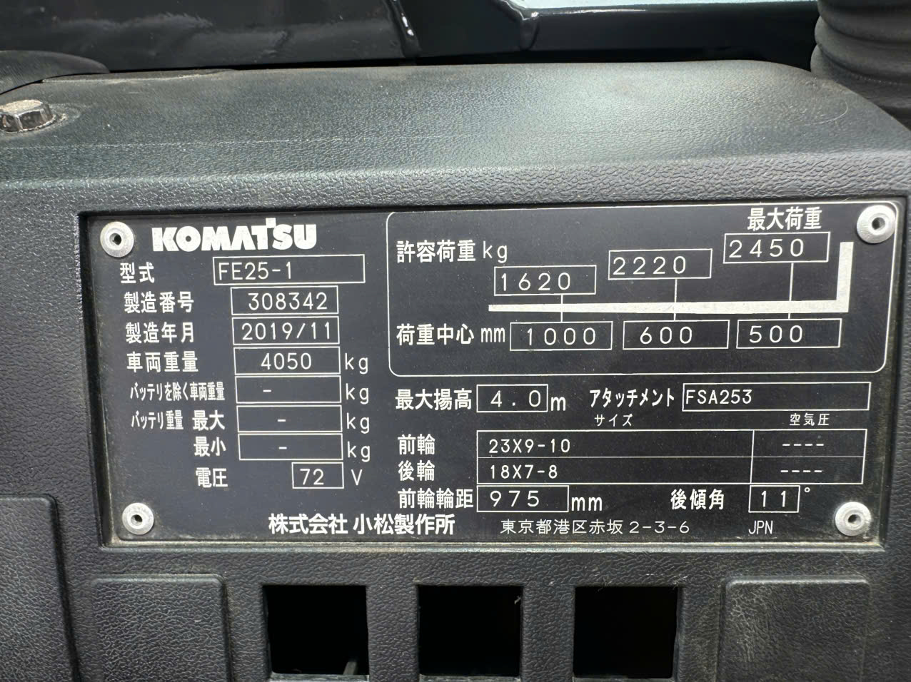 1. Thông Số Kỹ Thuật Xe Nâng Komatsu FE25-1